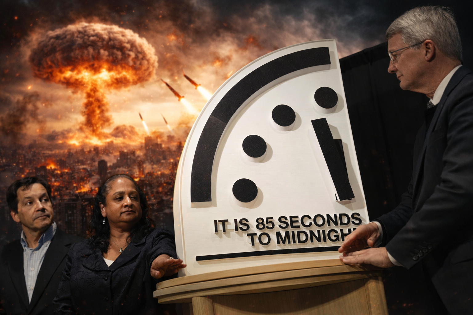 The Doomsday Clock reaches its 85 seconds to midnight mark which serves as a major warning that people should observe. The situation shows increasing dangers that come from nuclear weapons, climate change, uncontrolled technology, and weak global relations. The scientists see the current situation as critical, yet they believe international cooperation with immediate measures will help the world avoid disaster.